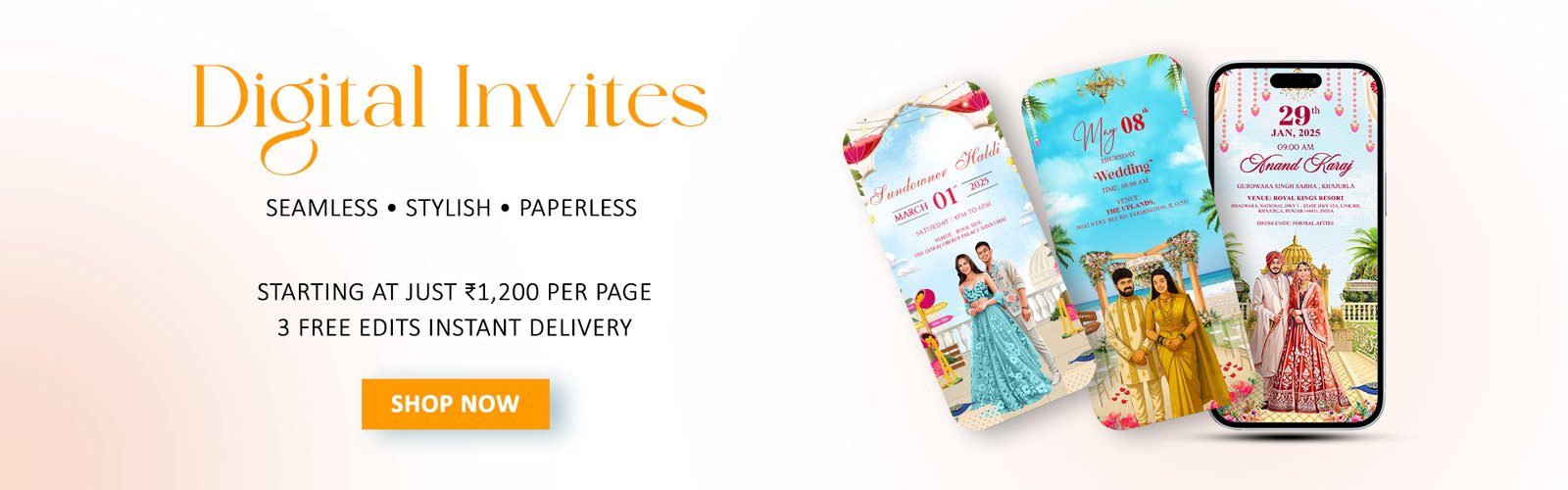 Yes, we do! Our digital e-invites are perfect for instant sharing on WhatsApp and email. They are lightweight, easy to forward, and eco-friendly. On the other hand, our print invitations bring the timeless elegance of holding a card in your hands. With premium paper, finishes, and packaging, our printed cards are designed to make a lasting impression on your guests.