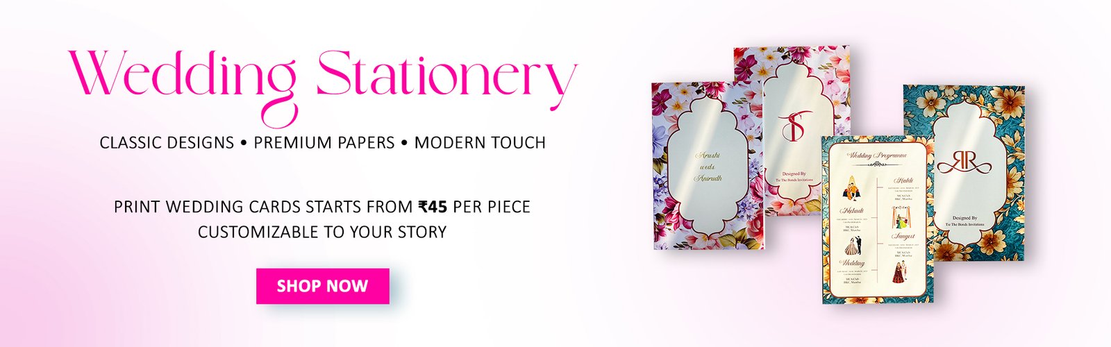 Absolutely! Every design is fully customizable. Whether you have a specific color theme, a love story you want illustrated, or a minimal yet classy look in mind, our design team will create stationery that reflects your personality and your wedding vibe. From fonts to layouts to motifs, you’ll have full creative freedom.